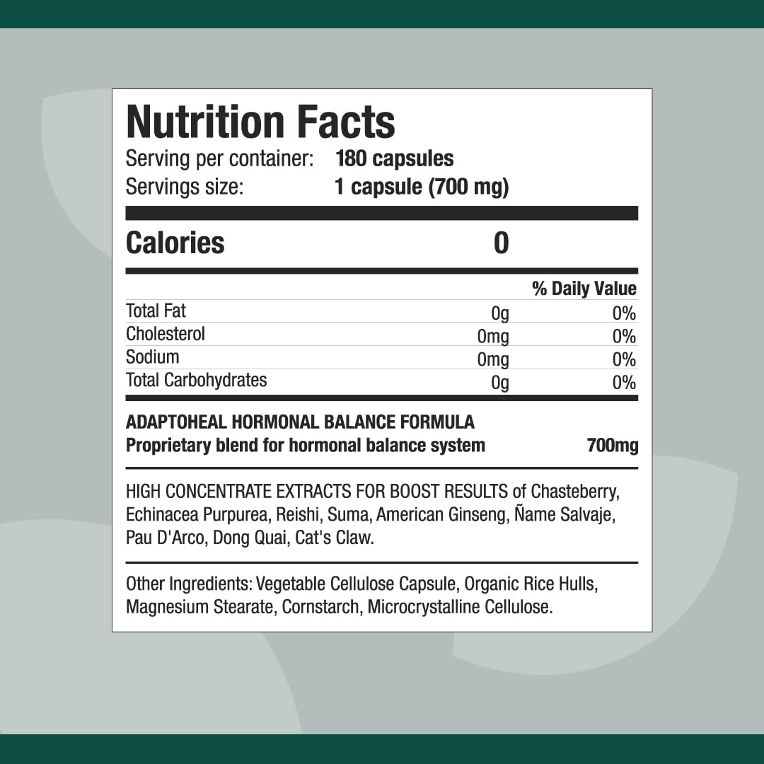 Details: Adaptoheal Hormobalance – Vitex, Ginseng and Cat’s Claw – Female Hormonal System Balance Supplement – Vegan, Gluten and Dairy Free (180 Capsules / 700 mg)