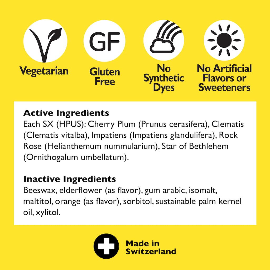 - TRUSTED FLOWER ESSENCE BLEND: Plant-based active ingredients, homeopathic, vegetarian. FREE OF: Artificial flavors/colors, gluten, sugar, major allergens. Non-alcohol, non-habit forming